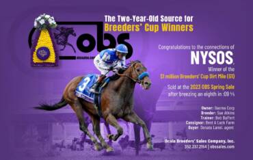The 42nd edition of the Breeders’ Cup World Championships proved a banner affair for graduates of Ocala Breeders’ Sales Company auctions. A total of four OBS grads prevailed during the…