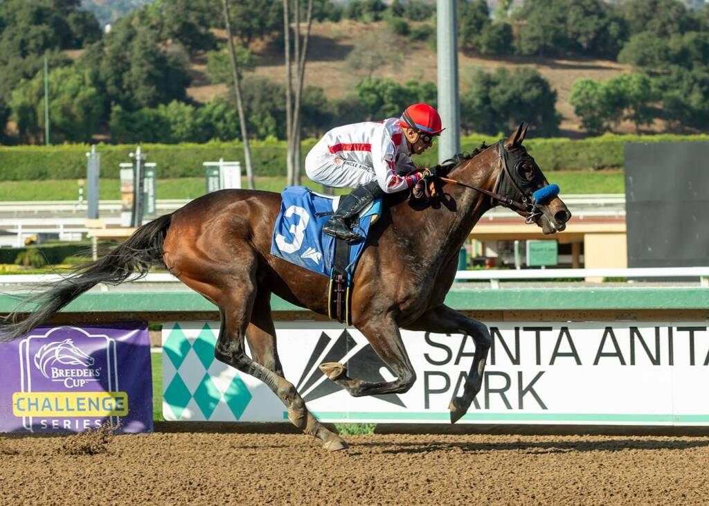 Despite a less-than-ideal break following a six-plus month layoff, Speedway Stables’ Cavalieri (Nyquist-Stiffed, by Stephen Got Even) was unbothered as she remained unbeaten with a victory in Grade 2, $200,000 Zenyatta Stakes going 1 1/16 miles at Santa Anita Park Sept. 28 to lead the slate of stakes-winning OBS grads for the week.