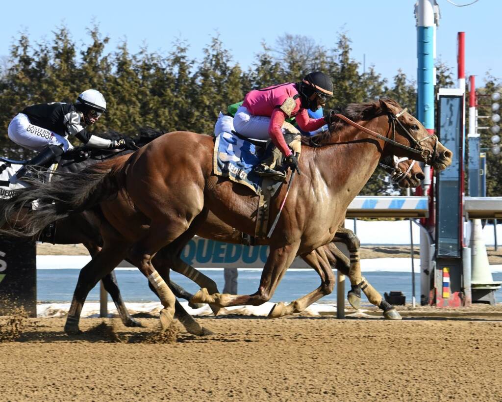 On March 1 at Aqueduct, Winning Move Stable, John C. Oxley, Lady Sheila Stable, Silverwood Stables and Sanford H. Robbins’ With the Angels (Omaha Beach – Sister Margaret, by Pulpit) earned a 4 1/2-length score for her first open-company stakes victory in Sunday’s $135,000 Correction Stakes.