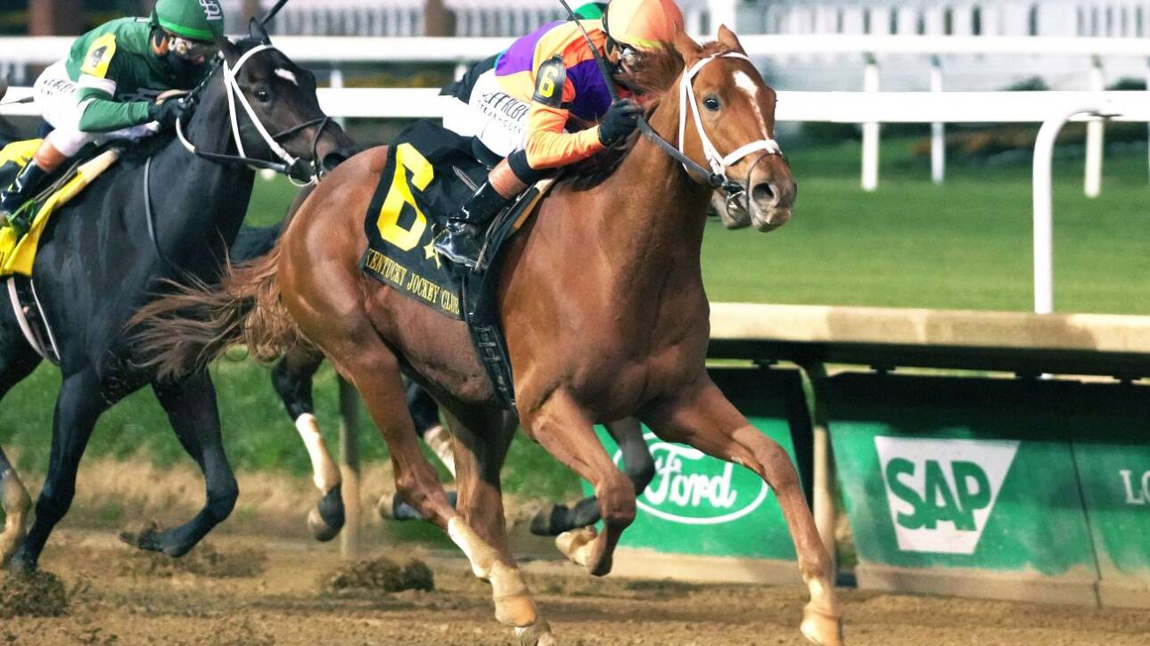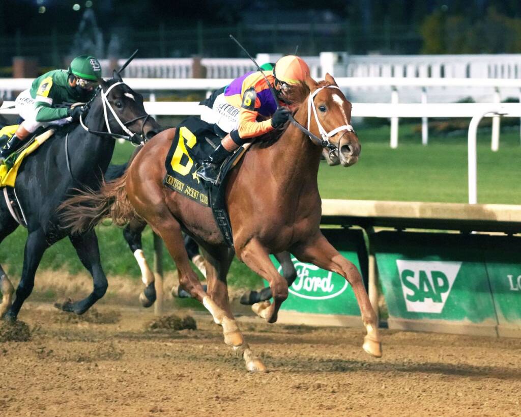 Further Ado wins the Grade 2 Kentucky Jockey Club Stakes at Churchill Downs. (Churchill Downs photo)