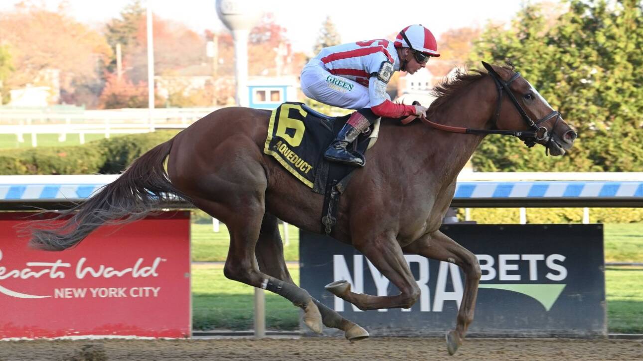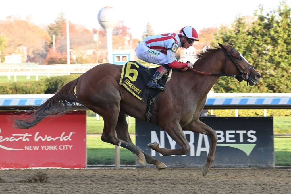 At Aqueduct Nov. 6, Klaravich Stables’ Deep Learning (Cairo Prince- Dovima, by Union Rags) sat a patient trip before pouncing in the lane to score the victory in the Listed $150,000 Chelsey Flower Stakes.