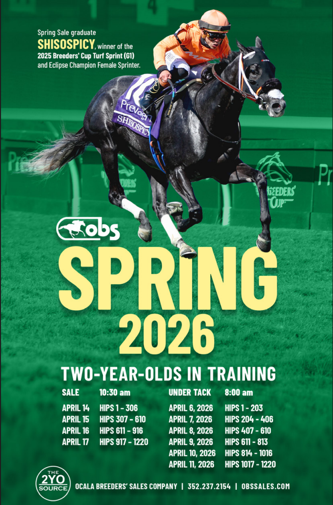 Current202620252024202320222021202020192018 Current202620252024202320222021202020192018 Current2026 Spring Two-Year-Olds in Training Sale20262026 Winter Mixed Sale2026 March Two-Year-Olds in Training Sale2026 Spring Two-Year-Olds in Training Sale2026 June Two-Year-Olds and Horses of Racing Age Sale2026 October Yearling Sale20252025 October Yearling Sale2025 Winter Mixed Sale2025 March Two-Year-Olds in Training Sale2025 Spring Two-Year-Olds in Training Sale2025 June Two-Year-Olds and Horses of Racing Age Sale20242024 January Winter Mixed & HRA Sale2024 March Two Year Olds in Training Sale2024 April Spring Sale of Two-Year-Olds in Training2024 June Two-Year-Olds and Horses of Racing Age2024 October Yearling Sale20232023 October Yearling Sale2023 June Two-Year-Olds & Horses of Racing AgeSpring Sale 20232023 March Sale2023 Winter Mixed Sale2022October Sale 20222022 June Two-Year-Olds & Horses of Racing AgeSpring Sale 20222022 March Sale2022 Winter Mixed Sale2021The 2021 October Yearling Sale2021 June Two-Year-Olds & Horses of Racing Age2021 Spring Sale of Two-Year-Olds in TrainingThe 2021 March Sale2021 Winter Mixed Sale20202020 October Sale2020 July Two-Year-Olds & Horses of Racing Age2020 Spring Sale of Two-Year-Olds in TrainingThe 2020 March Sale2020 Winter Mixed Sale20192019 October Yearling Sale2019 June Two-Year-Olds & Horses of Racing Age2019 Spring Sale of Two-Year-Olds in TrainingThe 2019 March Sale2019 Winter Mixed Sale20182018 October Yearling Sale2018 June Two-Year-Olds & Horses of Racing Age2018 Spring Sale of Two-Year-Olds in TrainingThe 2018 March Sale2018 Winter Mixed Sale